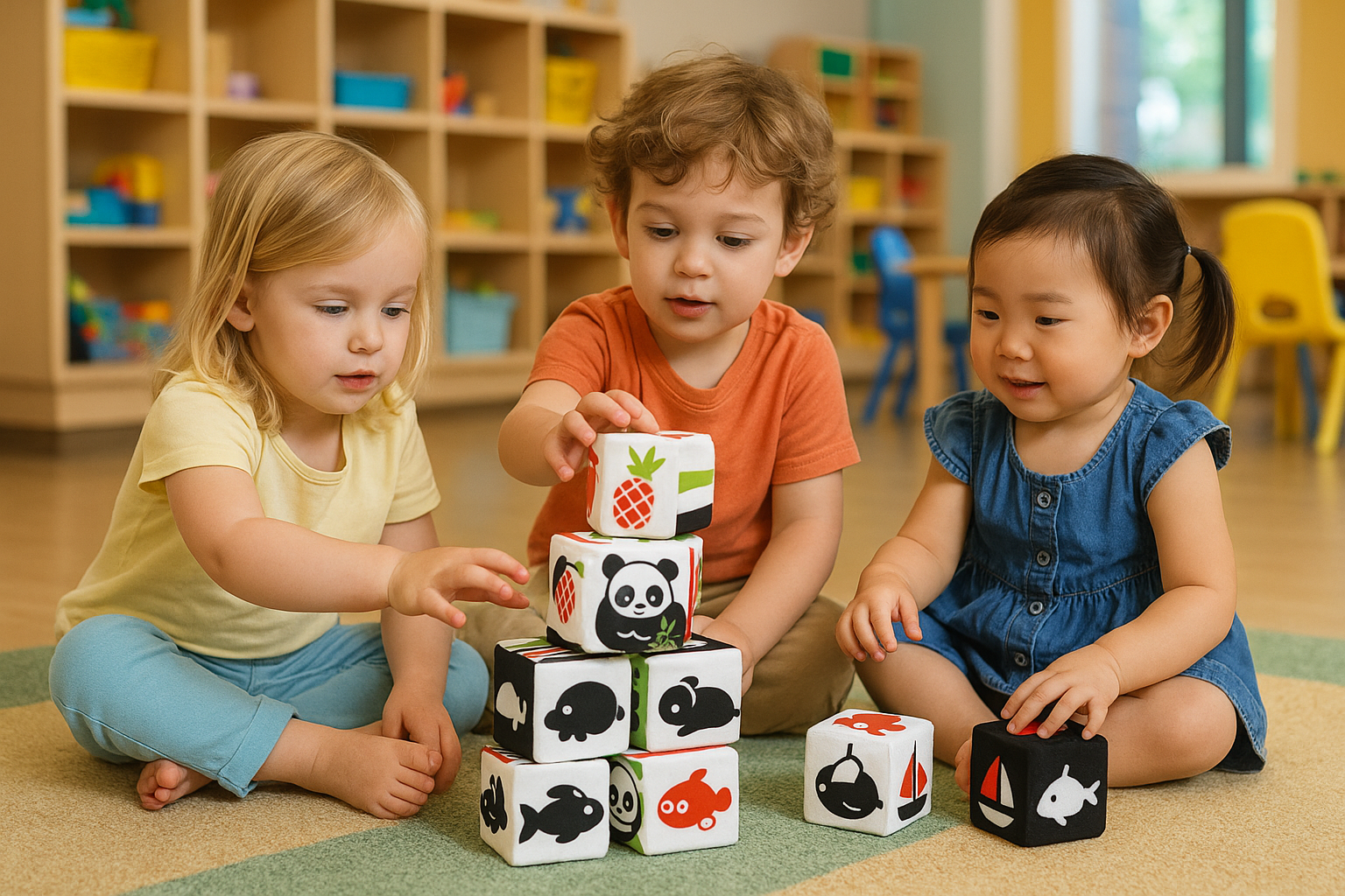 Estos cubos con gráficos contrastantes están diseñados para estimular la actividad visual del bebé, ayudando en el desarrollo de la percepción visual. Al manipular estos cubos, los niños desarrollan habilidades motoras finas y coordinación mano-ojo, promoviendo la exploración sensorial a través de sus colores vibrantes. Lado: 7 cm.