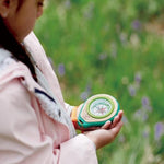 Set de 6 herramientas científicas en miniatura para niños y niñas desde 4 años: telescopio,  lupa 4x, frasco de muestras, brújula, linterna, silbato, mosquetones. Fomenta la observación del entorno natural, la orientación espacial y el trabajo colaborativo.