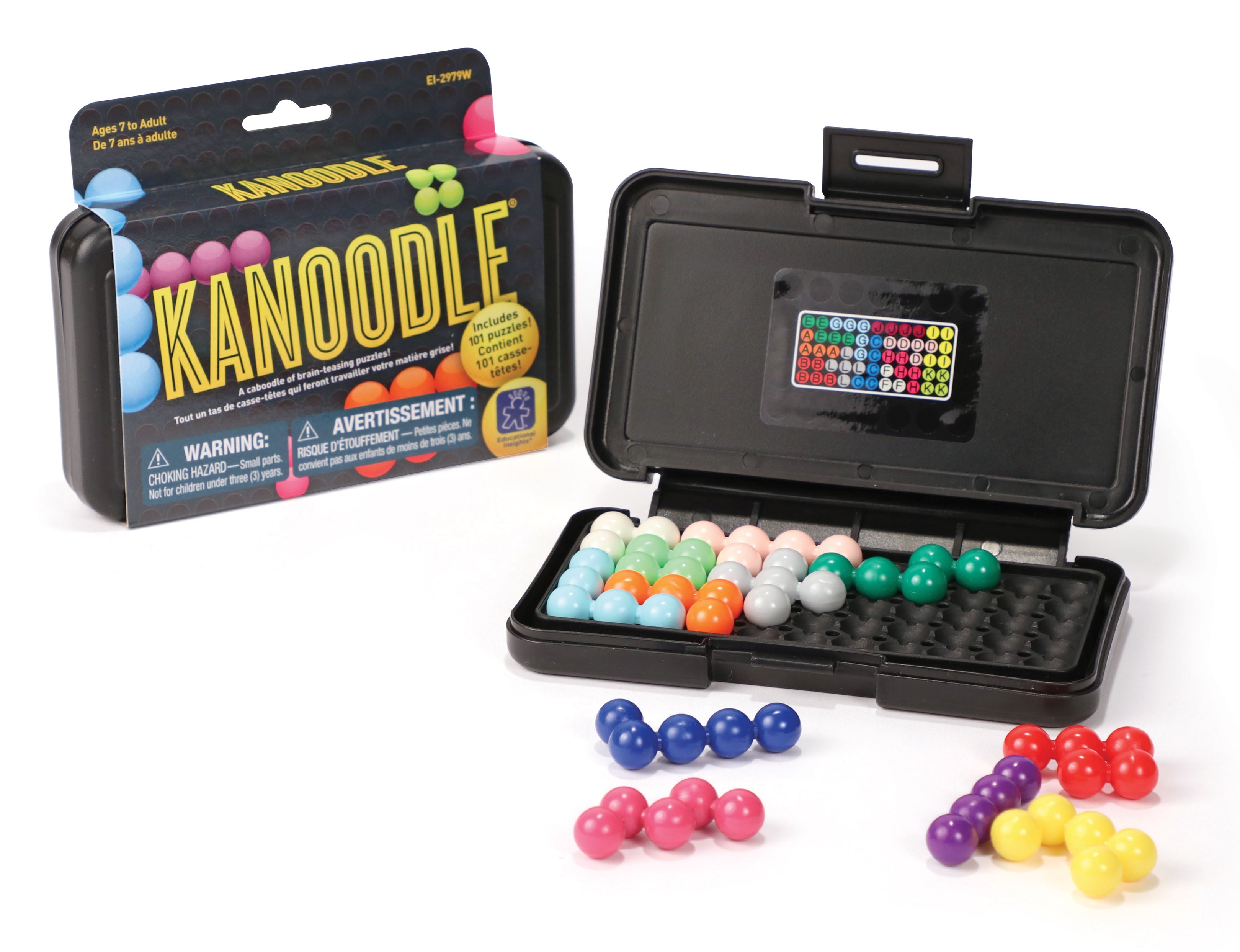 Kanoodle es un juego de lógica portátil y tremendamente adictivo (en el buen sentido): eliges un desafío del libro, armas la figura inicial y luego debes encajar las piezas restantes hasta llegar a la única solución correcta. Trae retos 2D (rectángulos) y 3D (pirámide) con distintos niveles de dificultad, ideal para entrenar razonamiento espacial y pensamiento crítico. Y cuando terminas, todo se guarda dentro de su estuche de bolsillo, perfecto para llevar en la mochila y jugar en cualquier parte.