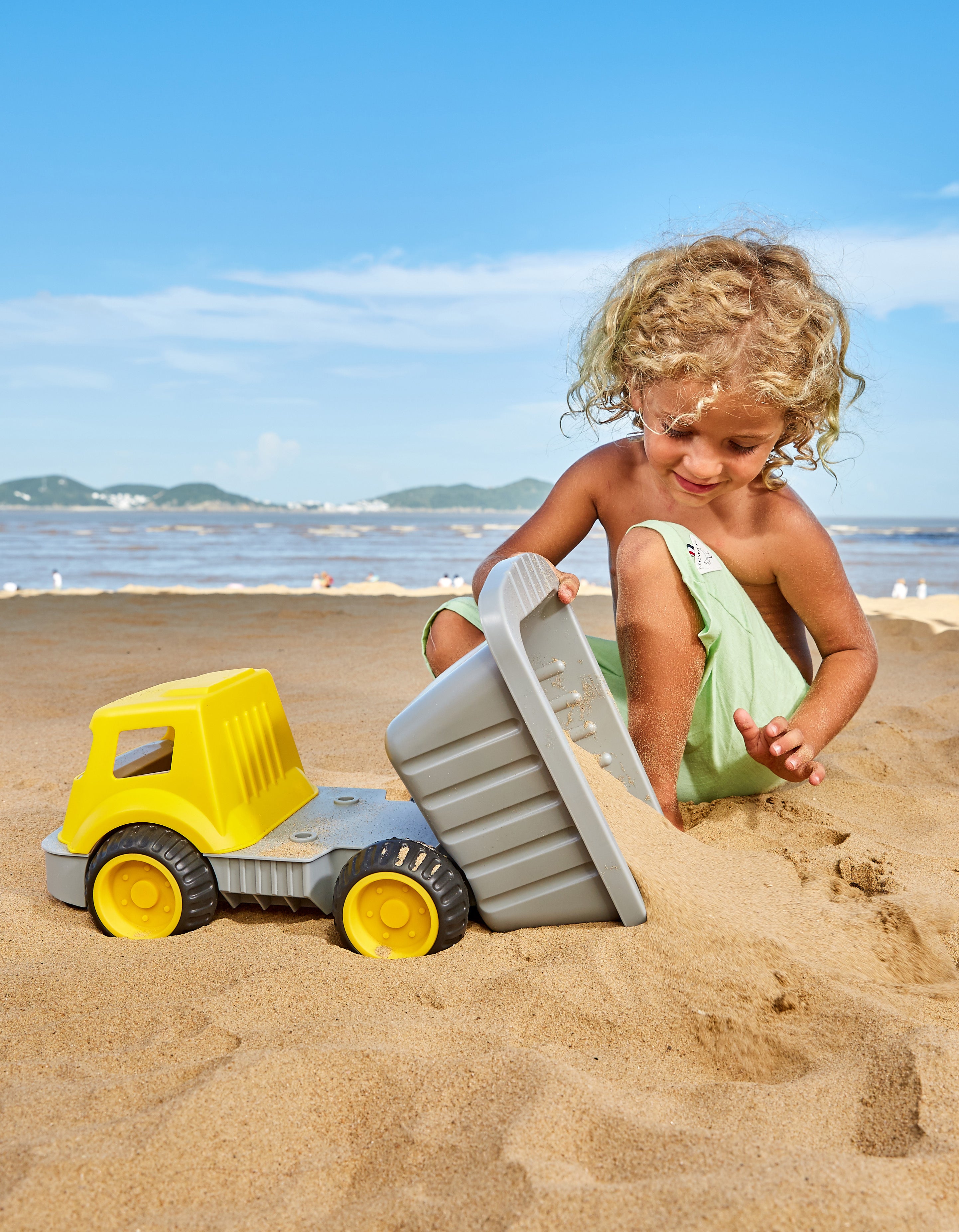 Carga, transporta y descarga tantas veces como sea necesario para construir un castillo de arena.