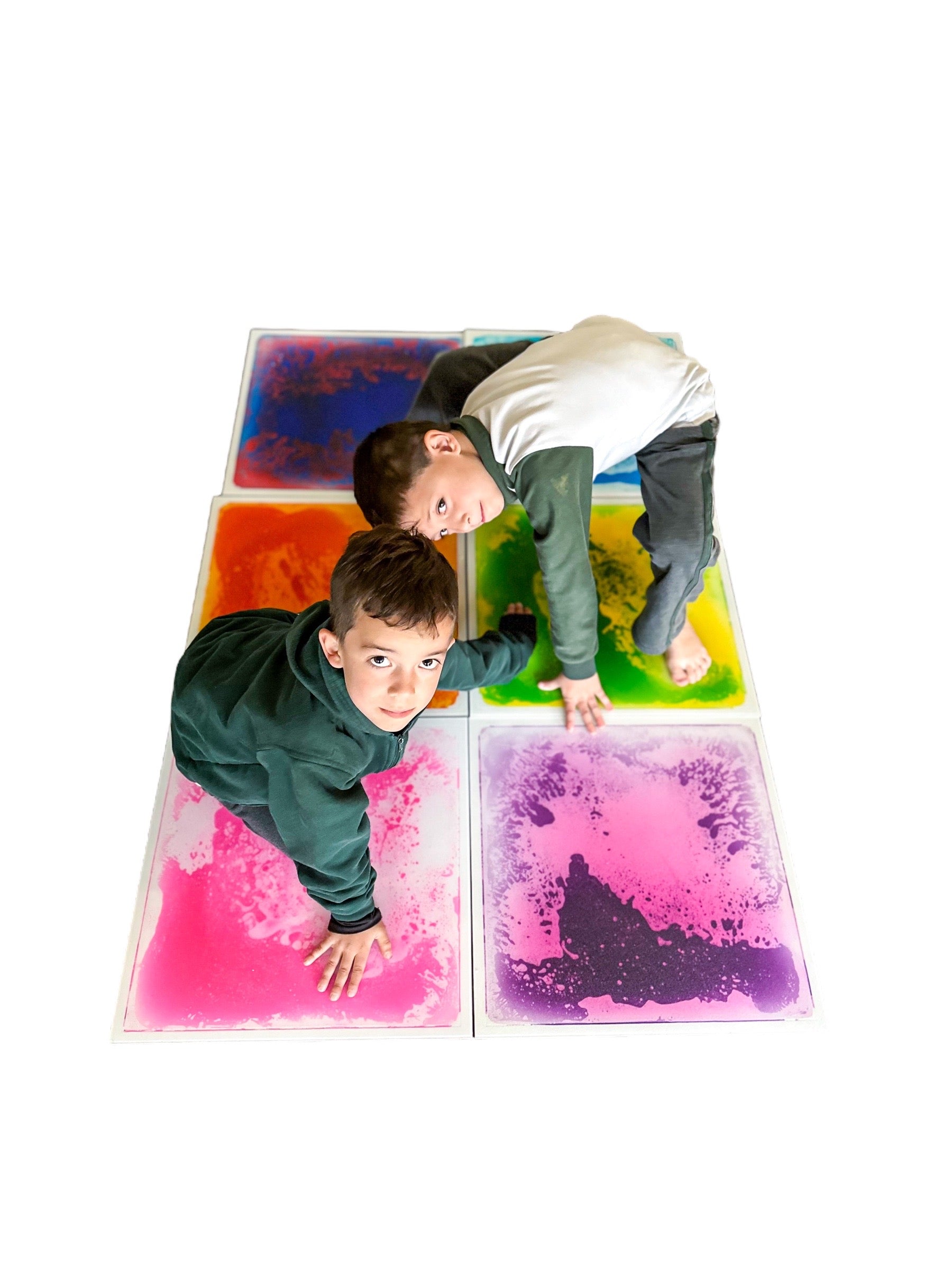 A medida que los pies de los niños entren en contacto con las baldosas, cada una cambiará a diferentes patrones. Ideal para cualquier entorno de aprendizaje temprano. Edad:+3 años