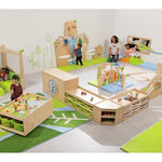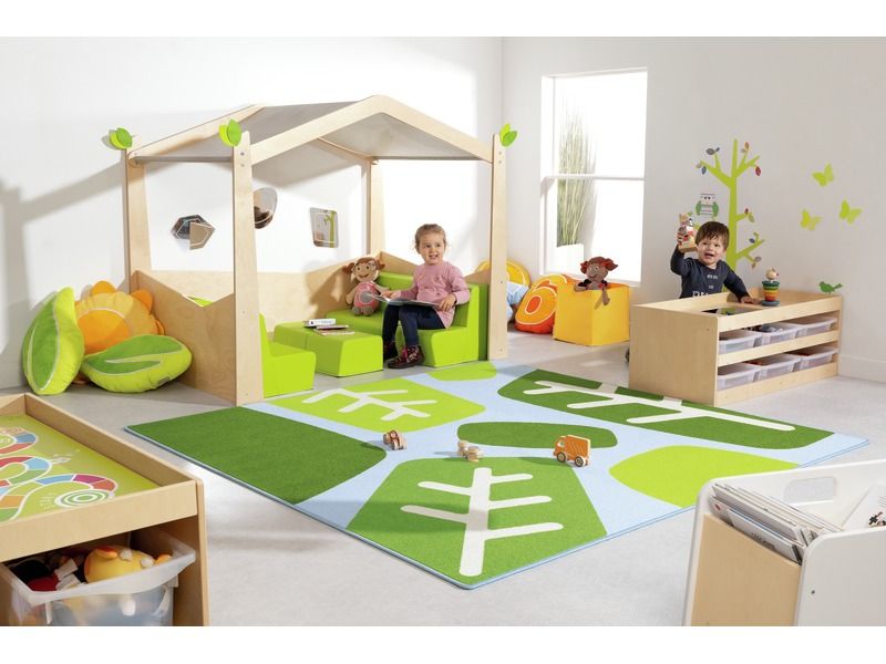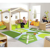 Esta alfombra gigante con diseño de hojas fomenta el aprendizaje activo y la exploración sensorial en espacios educativos. Su superficie suave y resistente (100% poliamida anti-pilling) permite juego intensivo, seguro y cómodo. Ideal para promover actividades grupales, desarrollo motriz, estimulación visual y táctil en ambientes infantiles. Tamaño: 200x200 cm, grosor 0,6 cm.