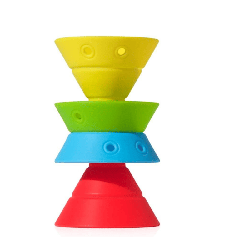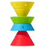 Este juguete geométrico transforma el aprendizaje en diversión. Cuatro conos de silicona flexible se convierten en distintas formas que pueden apilarse y anidarse, fomentando la exploración espacial, la coordinación y la motricidad fina. Su material seguro y silencioso lo hace ideal para el juego creativo sin límites. +3 años.
