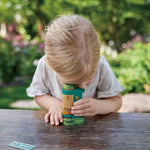 Este microscopio de bambú, ideal para pequeños exploradores, es fácil de usar con sus aumentos de 60, 100 y 120. Su marco verde, hecho de PE ecológico, cuida del planeta mientras exploran. Incluye 2 portaobjetos, es funcional, fácil de montar y transportar. Recomendada para mayores de 8 años.
