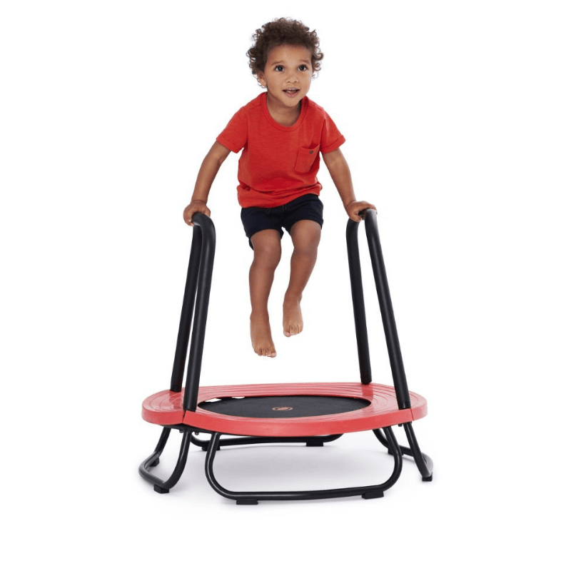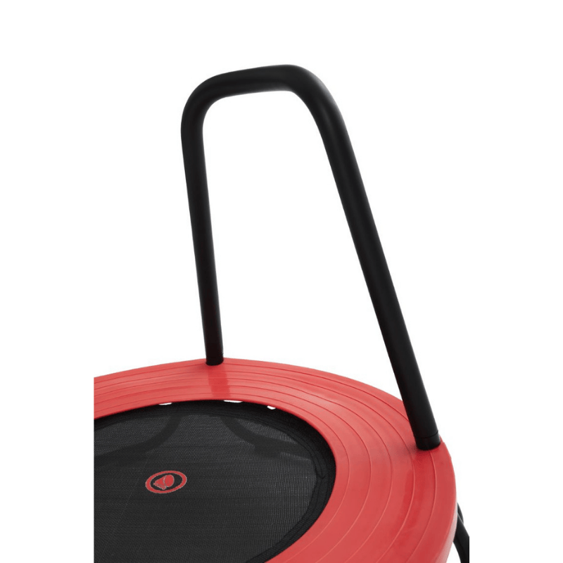 La superficie de salto queda a solo 18 cm del piso, ayudando a reducir el riesgo ante caídas. Incluye cubierta de goma que protege del marco metálico, y manillas de apoyo recubiertas con espuma para proteger el rostro y los dientes.