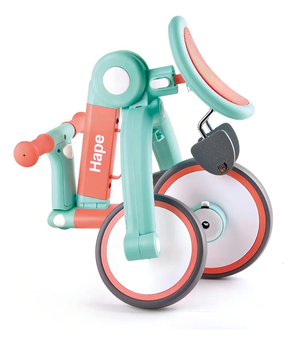 Es un triciclo de equilibrio ajustable con pedales que se quitan y ponen, marco ligero de aleación de aluminio, limite de 60° para evitar vuelcos. Experiencia inigualable a la hora de jugar.